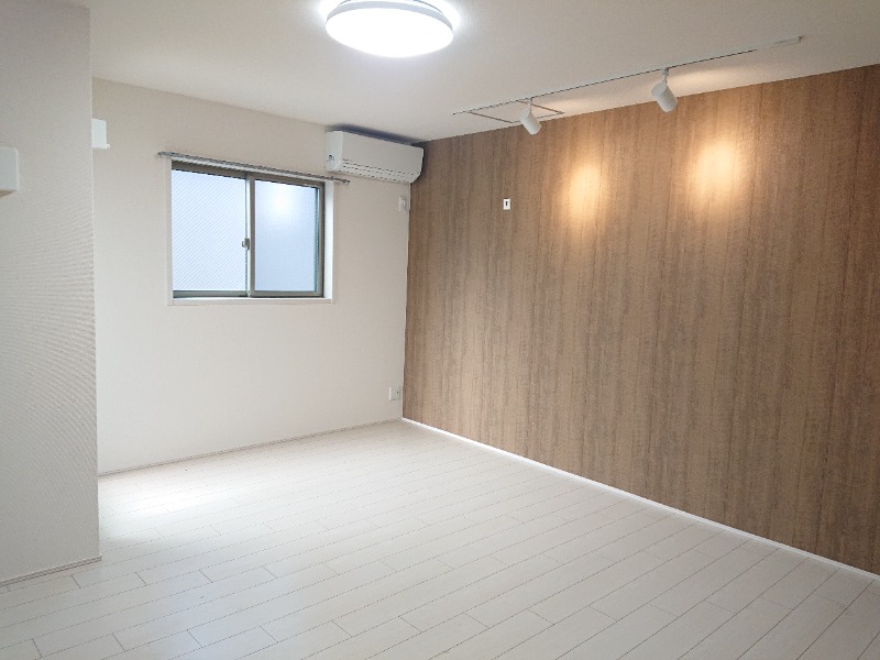 洋室は9.8帖と広々しており、白基調のお部屋にデザインクロスが良く映えるお洒落なお部屋です☆