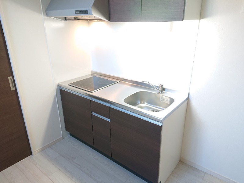 キッチンは2口のIHコンロが設置されており、調理スペースも確保されたお料理のしやすいキッチンとなっております。