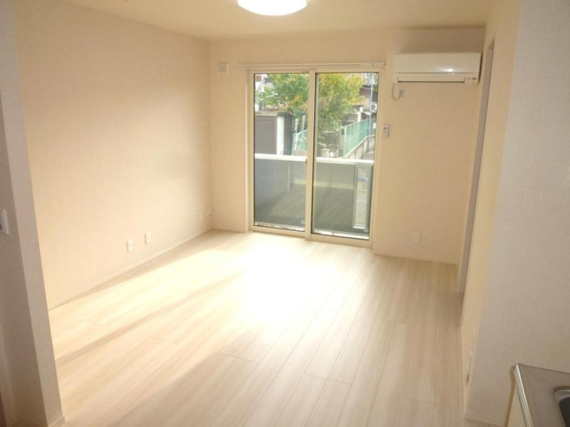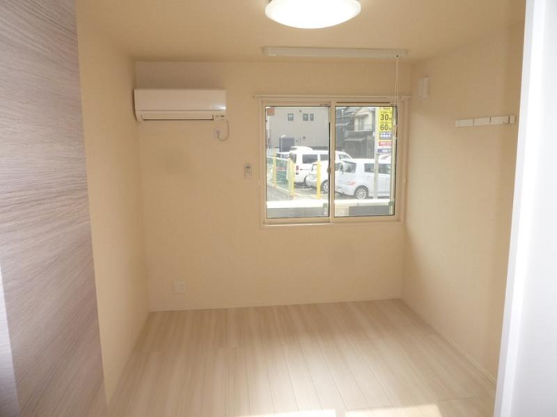 2つ目のお部屋が6帖のお部屋になっています。冷房、電気が備わったお部屋になっています。