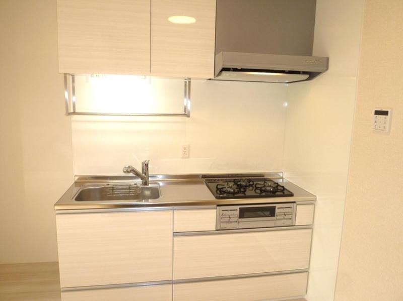 3口のガスコンロとなっていましてグリルも備わったキッチン設備となっています。