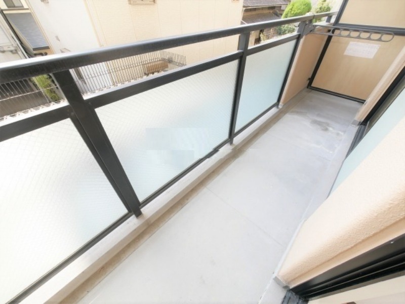 二つのお部屋分の幅の広さがありますので、洗濯物もしっかりと干していただけますし、物の出し入れ等もスムーズにして頂けますので、とても使いがっての良いベランダとなっています。