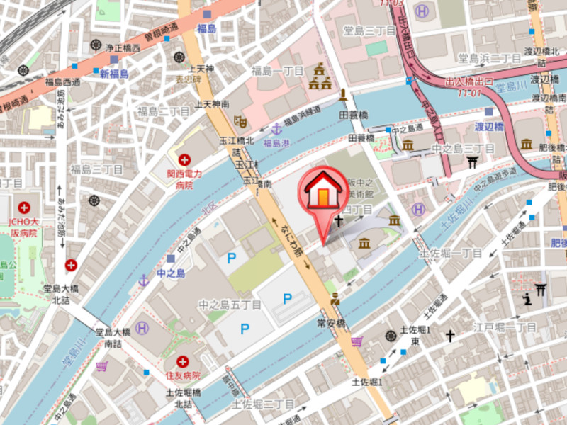 | 交通 | 京阪中之島線「中之島駅」徒歩6分 京阪中之島線「渡辺橋駅」徒歩9分 阪神本線「福島駅」徒歩9分 |