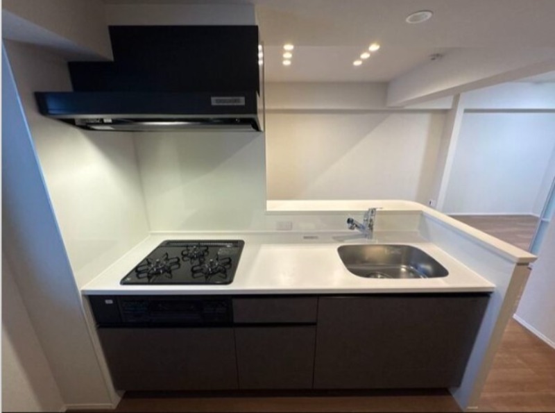 二人入居可、システムキッチン、給湯、追焚機能、ウォークインクローゼット、CSアンテナ、BSアンテナ、宅配ボックス、駐輪場あり、温水洗浄便座、カウンターキッチン、浴室乾燥機、洗面所独立、防犯カメラ、クローゼット、シューズボックス、照明器具付き、ペット対応、保証人不要、水道(公営)、ガス(都市)、排水(下水)、バス専用、バス・トイレ別、シャワー、ガスコンロ、コンロ(三口)、エアコン、室内洗濯機置き場、オートロック、バルコニー、フローリング、TVドアホン、インターネット使用料無料、セキュリティ会社