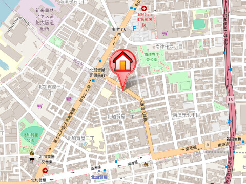 | 近隣情報 | 郵便局:住之江北加賀屋郵便局145m コンビニ:セブンイレブン大阪北加賀屋1丁目店296m スーパー:業務スーパー南津守店323m その他学校:南大阪看護専門学校419m 病院:医療法人山紀会山本第三病院637m ドラッグストア:スギ薬局東加賀屋店693m ショッピングセンター:ユニクロ住之江店1122m 役所:大阪市住之江区役所1998m |