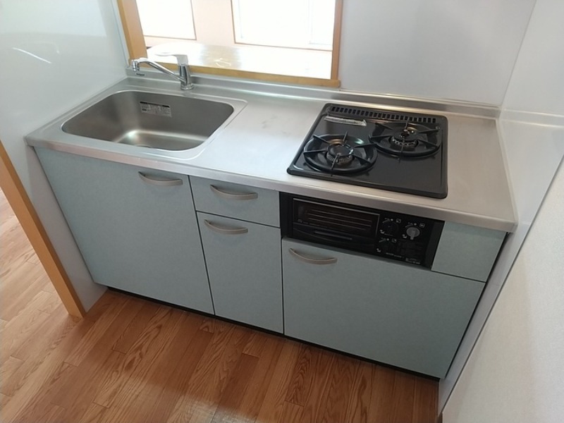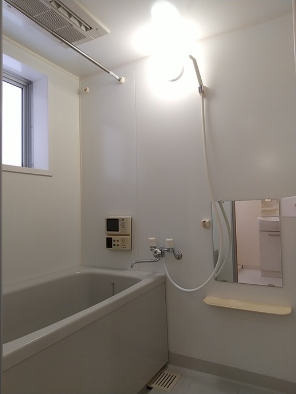 二人入居可、システムキッチン、給湯、追焚機能、シャワー付洗面化粧台、宅配ボックス、駐輪場あり、角部屋、温水洗浄便座、カウンターキッチン、浴室乾燥機、洗面所独立、クローゼット、シューズボックス、保証人不要、水道(公営)、ガス(都市)、排水(下水)、バス・トイレ別、シャワー、ガスコンロ、コンロ(二口)、エアコン、オートロック、バルコニー、フローリング、セキュリティ会社、敷金なし
