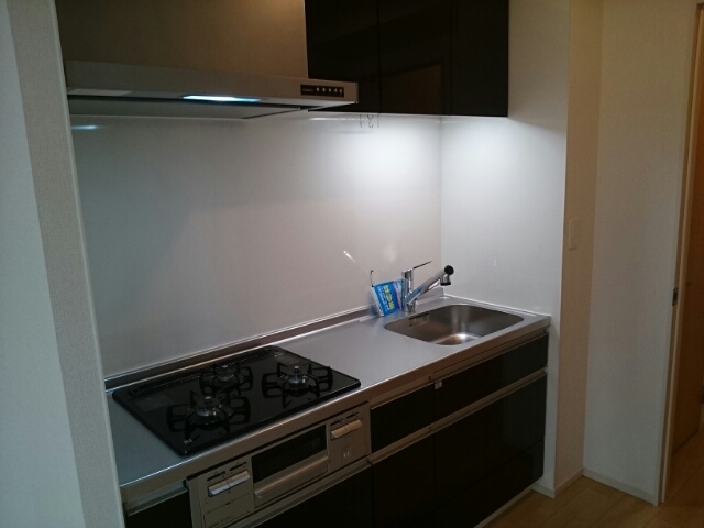 二人入居可、システムキッチン、給湯、追焚機能、シャワー付洗面化粧台、CSアンテナ、BSアンテナ、宅配ボックス、駐輪場あり、温水洗浄便座、浴室乾燥機、洗面所独立、防犯カメラ、クローゼット、シューズボックス、保証人不要、水道(公営)、ガス(都市)、排水(下水)、バス・トイレ別、シャワー、ガスコンロ、コンロ(三口)、エアコン、室内洗濯機置き場、オートロック、バルコニー、フローリング、TVドアホン、インターネット使用料無料、セキュリティ会社、最上階、敷金なし