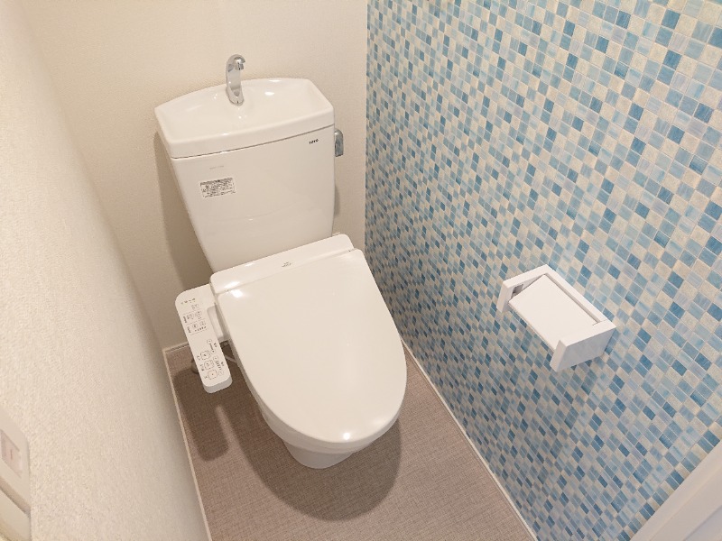 機能付きのトイレで壁もとてもお洒落になっています。