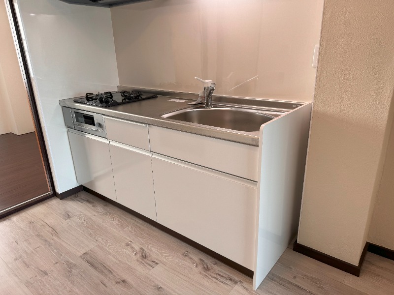 システムキッチン3口ガスコンロ、エアコン完備♪