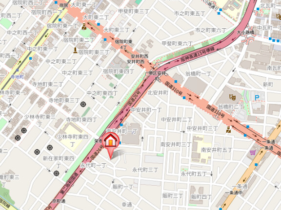阪堺電軌阪堺線「寺地町駅」徒歩12分 阪堺電軌阪堺線「御陵前駅」徒歩12分 阪堺電軌阪堺線「宿院駅」徒歩14分 |