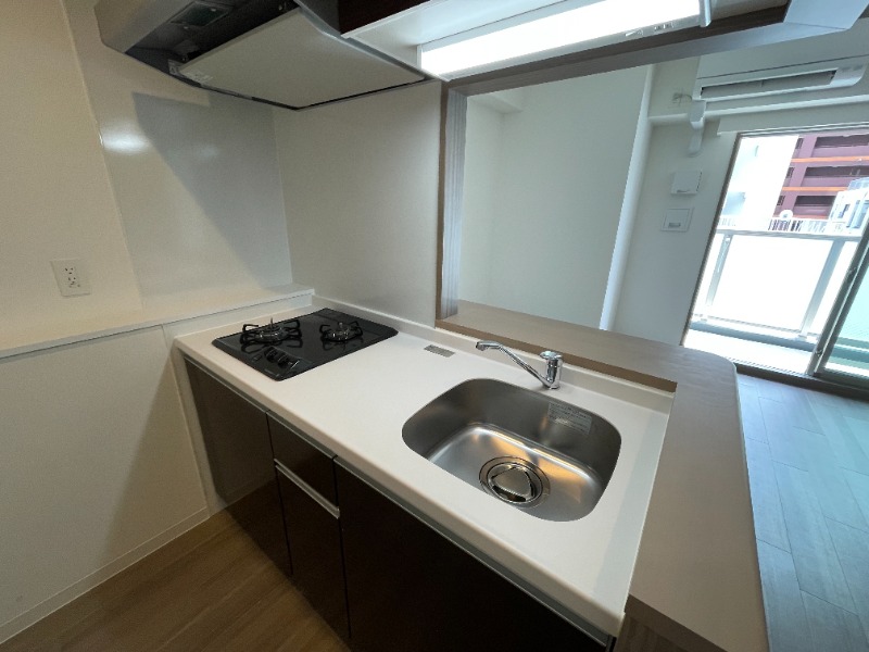 二人入居可、システムキッチン、給湯、シャワー付洗面化粧台、ウォークインクローゼット、CSアンテナ、BSアンテナ、宅配ボックス、駐輪場あり、角部屋、温水洗浄便座、カウンターキッチン、洗面所独立、防犯カメラ、シューズボックス、オートバス、水道(公営)、ガス(都市)、排水(下水)、バス・トイレ別、シャワー、ガスコンロ、コンロ(二口)、エアコン、室内洗濯機置き場、オートロック、エレベータ有、バルコニー、フローリング、TVドアホン、インターネット使用料無料、セキュリティ会社、敷金なし