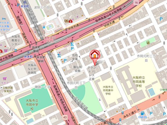 近隣情報 | コンビニ:ファミリーマート波除中央大通店411m スーパー:ライフ弁天町店699m ドラッグストア:テイコク薬店弁天町店760m 銀行:大阪シティ信用金庫西支店1170m 病院:社会法人日本海員掖済会大阪掖済会病院2016m 大学:私立相愛大学本町キャンパス4051m |