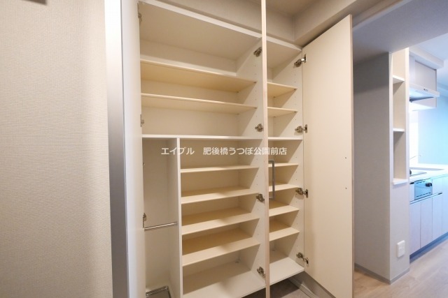 システムキッチン、ウォークインクローゼット、CSアンテナ、BSアンテナ、宅配ボックス、床暖房、温水洗浄便座、浴室乾燥機、洗面所独立、防犯カメラ、シューズボックス、ペット対応、水道(公営)、ガス(都市)、排水(下水)、バス専用、バス・トイレ別、シャワー、ガスコンロ、コンロ(二口)、エアコン、室内洗濯機置き場、オートロック、エレベータ有、バルコニー、フローリング、礼金無し、敷金なし