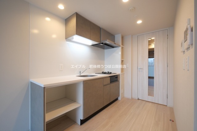 システムキッチン、ウォークインクローゼット、CSアンテナ、BSアンテナ、宅配ボックス、床暖房、温水洗浄便座、浴室乾燥機、洗面所独立、防犯カメラ、シューズボックス、ペット対応、水道(公営)、ガス(都市)、排水(下水)、バス専用、バス・トイレ別、シャワー、ガスコンロ、コンロ(二口)、エアコン、室内洗濯機置き場、オートロック、エレベータ有、バルコニー、フローリング、敷金なし