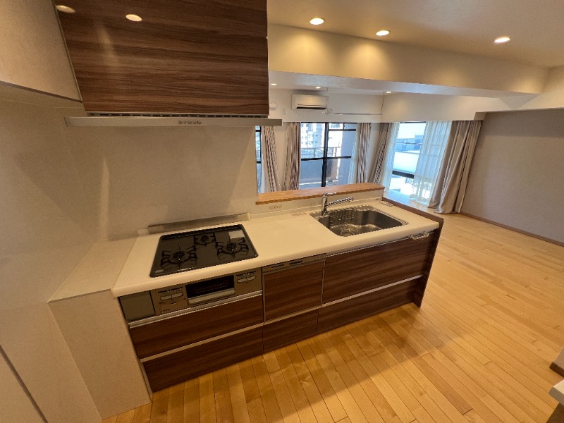 二人入居可、分譲賃貸、システムキッチン、給湯、追焚機能、ウォークインクローゼット、CATV、駐輪場あり、バイク置き場あり、角部屋、温水洗浄便座、カウンターキッチン、浴室乾燥機、洗面所独立、食器洗い乾燥機、防犯カメラ、クローゼット、シューズボックス、オートバス、保証人要、水道(公営)、ガス(都市)、排水(下水)、バス専用、バス・トイレ別、シャワー、ガスコンロ、コンロ(三口)、エアコン、室内洗濯機置き場、オートロック、エレベータ有、バルコニー、フローリング、インターネット対応(光ファイバー)、TVドアホン、リノベーション