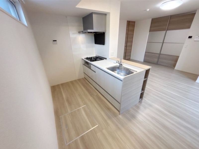 二人入居可、システムキッチン、給湯、追焚機能、床下収納、ウォークインクローゼット、CATV、BSアンテナ、宅配ボックス、駐輪場あり、角部屋、温水洗浄便座、カウンターキッチン、浴室乾燥機、洗面所独立、防犯カメラ、クローゼット、シューズボックス、保証人不要、水道(公営)、ガス(都市)、排水(下水)、バス専用、バス・トイレ別、シャワー、ガスコンロ、コンロ(三口)、エアコン、室内洗濯機置き場、オートロック、バルコニー、フローリング、TVドアホン、インターネット使用料無料、セキュリティ会社、礼金無し、敷金なし