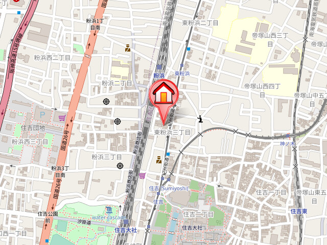 | 近隣情報 | 銀行:大阪シティ信用金庫住吉支店84m ドラッグストア:ダイコクドラッグ粉浜駅前店171m コンビニ:ファミリーマート東粉浜三丁目店176m 郵便局:住吉東粉浜郵便局239m スーパー:コノミヤ粉浜店291m 飲食店:かつや大阪住之江粉浜店410m 病院:医療法人錦秀会阪和第二住吉病院859m |
