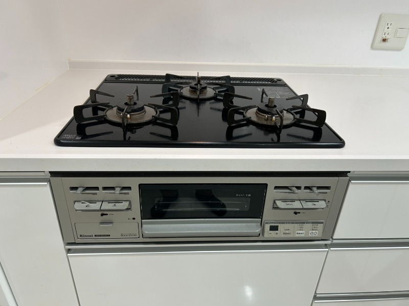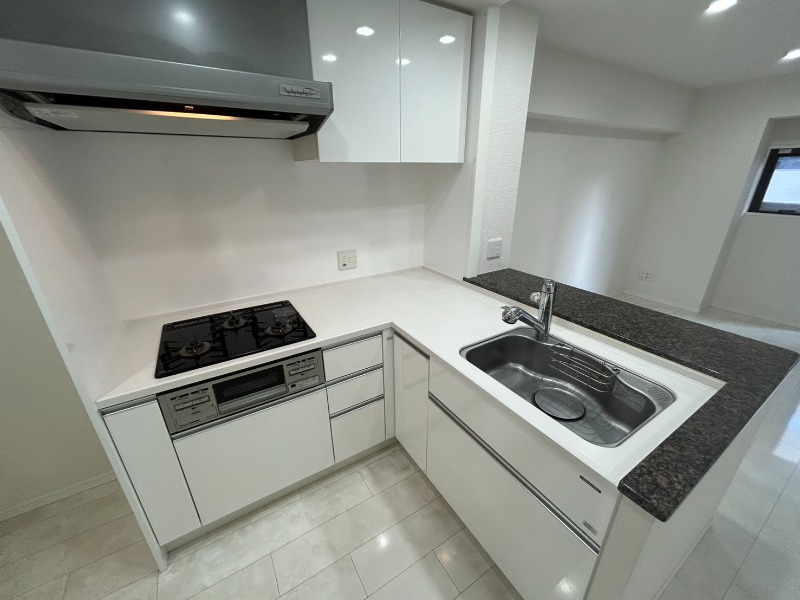 二人入居可、システムキッチン、給湯、追焚機能、ウォークインクローゼット、宅配ボックス、角部屋、温水洗浄便座、カウンターキッチン、浴室乾燥機、洗面所独立、防犯カメラ、クローゼット、シューズボックス、オートバス、保証人要、バス専用、バス・トイレ別、シャワー、ガスコンロ、コンロ(三口)、エアコン、室内洗濯機置き場、オートロック、バルコニー、フローリング、インターネット対応(光ファイバー)、TVドアホン、敷金なし