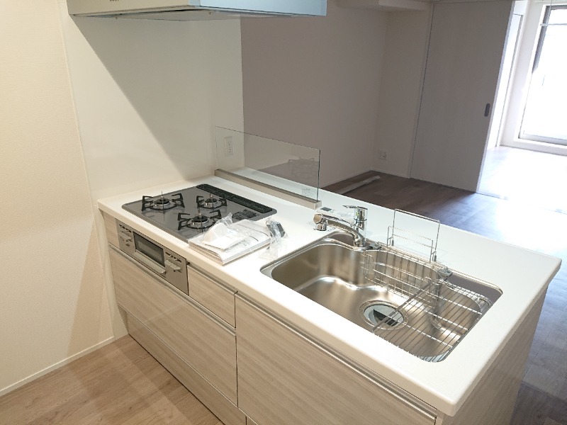 二人入居可、システムキッチン、給湯、追焚機能、宅配ボックス、駐輪場あり、角部屋、温水洗浄便座、浴室乾燥機、洗面所独立、クローゼット、シューズボックス、水道(公営)、ガス(都市)、排水(下水)、バス専用、バス・トイレ別、シャワー、ガスコンロ、コンロ(三口)、エアコン、室内洗濯機置き場、オートロック、バルコニー、フローリング、インターネット対応(光ファイバー)、TVドアホン、インターネット使用料無料、敷金なし