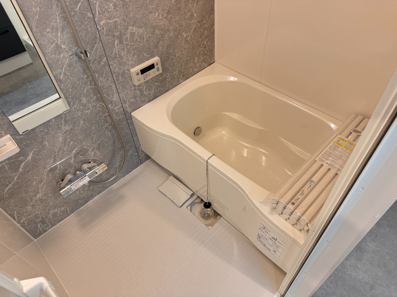 二人入居可、システムキッチン、給湯、追焚機能、シャワー付洗面化粧台、宅配ボックス、駐輪場あり、バイク置き場あり、温水洗浄便座、カウンターキッチン、浴室乾燥機、洗面所独立、防犯カメラ、クローゼット、水道(公営)、ガス(都市)、排水(下水)、バス専用、バス・トイレ別、シャワー、ガスコンロ、コンロ(三口)、室内洗濯機置き場、オートロック、エレベータ有、バルコニー、フローリング、TVドアホン