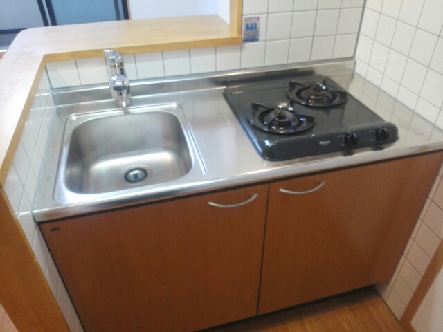 システムキッチン、給湯、シャワー付洗面化粧台、BSアンテナ、宅配ボックス、駐輪場あり、カウンターキッチン、浴室乾燥機、洗面所独立、防犯カメラ、クローゼット、シューズボックス、水道(公営)、ガス(都市)、排水(下水)、バス・トイレ別、シャワー、ガスコンロ、コンロ(二口)、エアコン、室内洗濯機置き場、オートロック、バルコニー、フローリング、TVドアホン、礼金無し、敷金なし