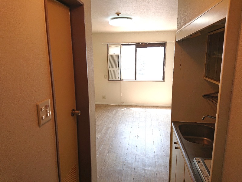 給湯、水道(公営)、ガス(都市)、排水(下水)、バス専用、シャワー、電気コンロ、コンロ(一口)、エアコン、フローリング、インターネット対応(光ファイバー)、最上階、礼金無し、敷金なし