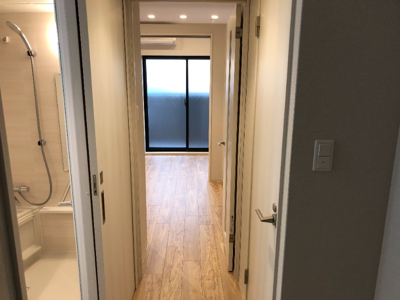 二人入居可、システムキッチン、給湯、ウォークインクローゼット、宅配ボックス、駐輪場あり、バイク置き場あり、角部屋、温水洗浄便座、浴室乾燥機、洗面所独立、防犯カメラ、シューズボックス、ペット対応、水道(公営)、ガス(都市)、排水(下水)、バス専用、バス・トイレ別、シャワー、IHコンロ、コンロ(二口)、エアコン、室内洗濯機置き場、オートロック、エレベータ有、バルコニー、フローリング、インターネット対応(光ファイバー)、TVドアホン、インターネット使用料無料、敷金なし
