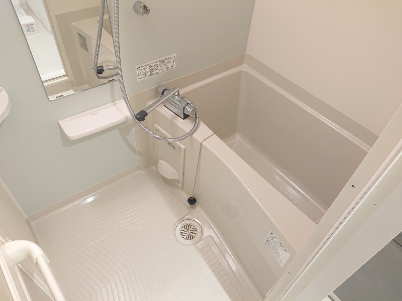 角に棚があり、浴室もとても綺麗です。