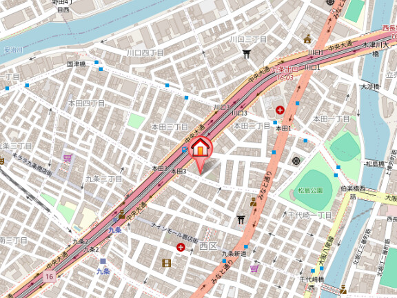 - 地下鉄四ツ橋線 肥後橋駅7番出口より南西へ徒歩3分
