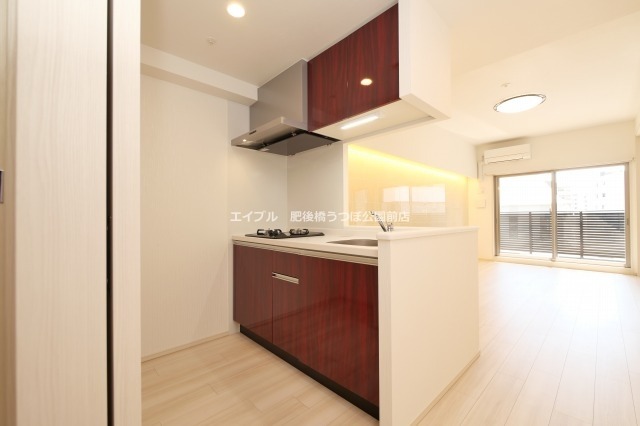 二人入居可、システムキッチン、給湯、追焚機能、ウォークインクローゼット、CSアンテナ、BSアンテナ、宅配ボックス、駐輪場あり、バイク置き場あり、温水洗浄便座、カウンターキッチン、浴室乾燥機、洗面所独立、防犯カメラ、シューズボックス、照明器具付き、ペット相談、水道(公営)、ガス(都市)、排水(下水)、バス専用、バス・トイレ別、シャワー、ガスコンロ、コンロ(二口)、エアコン、室内洗濯機置き場、オートロック、エレベータ有、バルコニー、フローリング、TVドアホン、インターネット使用料無料、敷金なし