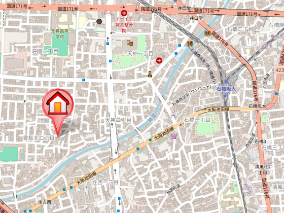阪急宝塚本線「石橋阪大前駅」徒歩10分 阪急箕面線「石橋阪大前駅」徒歩10分 大阪モノレール線「蛍池駅」徒歩21分 |