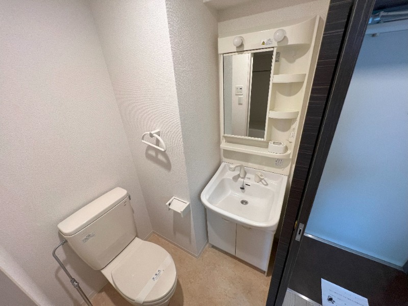 脱衣所は独立洗面台とトイレが同空間。