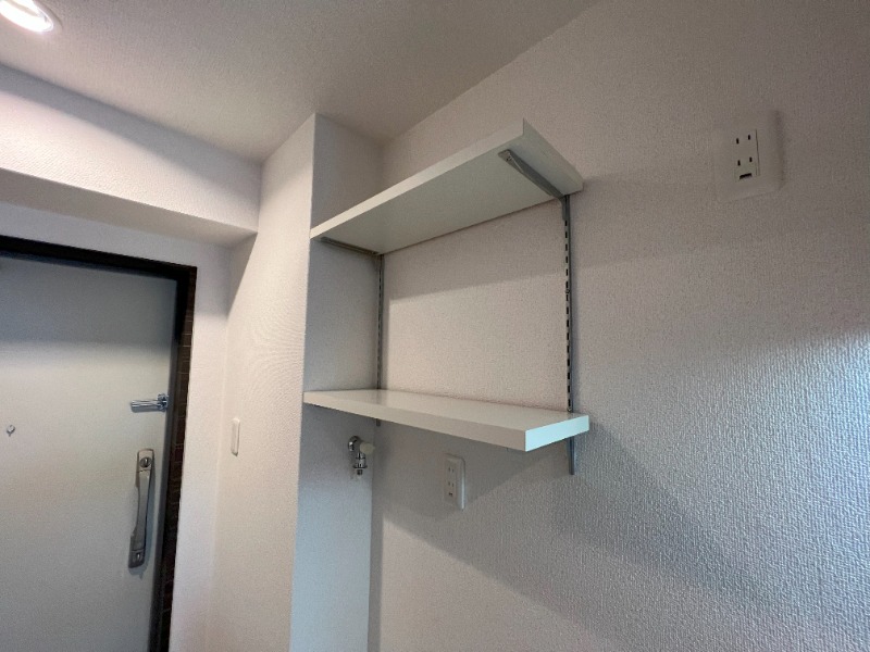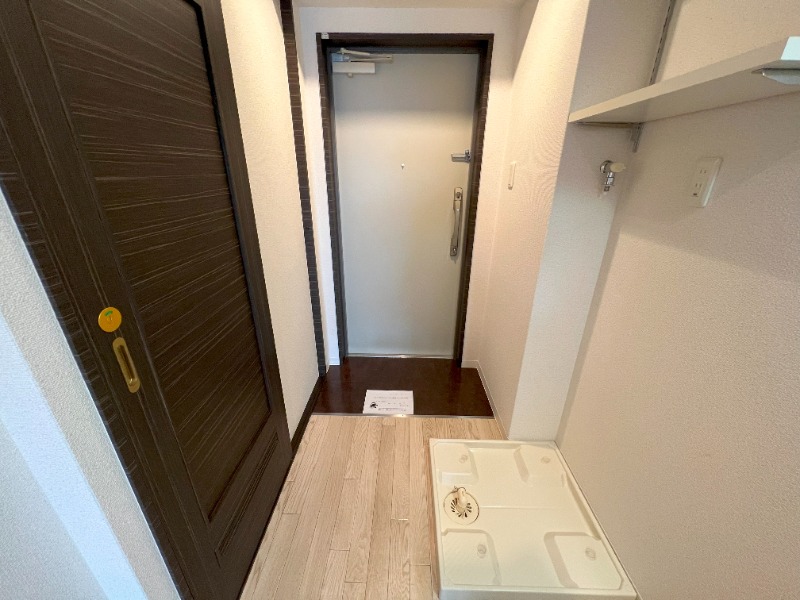 玄関入ってすぐ目の前に室内洗濯パンが設置されております。